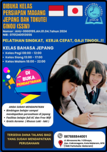 Mari belajar bahasa Jepang dan Pelatihan kerja ke Jepang bersama LPK JISCO International School Jepang. Kami pandu sepenuh hati sampai...